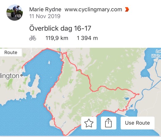 Efter stadslivet i Wellington tar vi färjan över till den Södra ön där vi har 5 cykeldagar (ska stå dag 18-22 på bilden nedan) längs den norra kustlinjen. Kul att vi lyckas hinna med båda öarna även om det blir lite knapphändigt med tid på just den Södra.