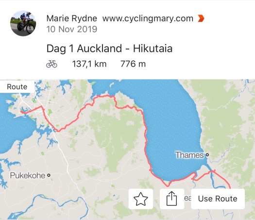 Rutten är uppdelad i 3 sammanhängande etapper med lite fusktransporter mellan (buss & färja). Så här ser dag 1-13 ut i en sammanhängande överblicksbild i Stravaformat. På den norra ön.