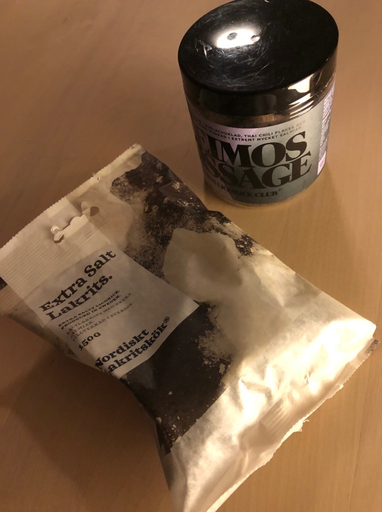 För att vara säker på att jag verkligen klarar de här vattenmängderna slank jag in på Lakritsroten idag och fyllde på med nödraketer i form av saltlakrits. Den ena spetsad med chili. Det här survivalkitet kan rädda vem som helst från det mesta faktiskt. Och lakrits är ju extra god när den är sådär lite blötlagd. Det vet ju alla.