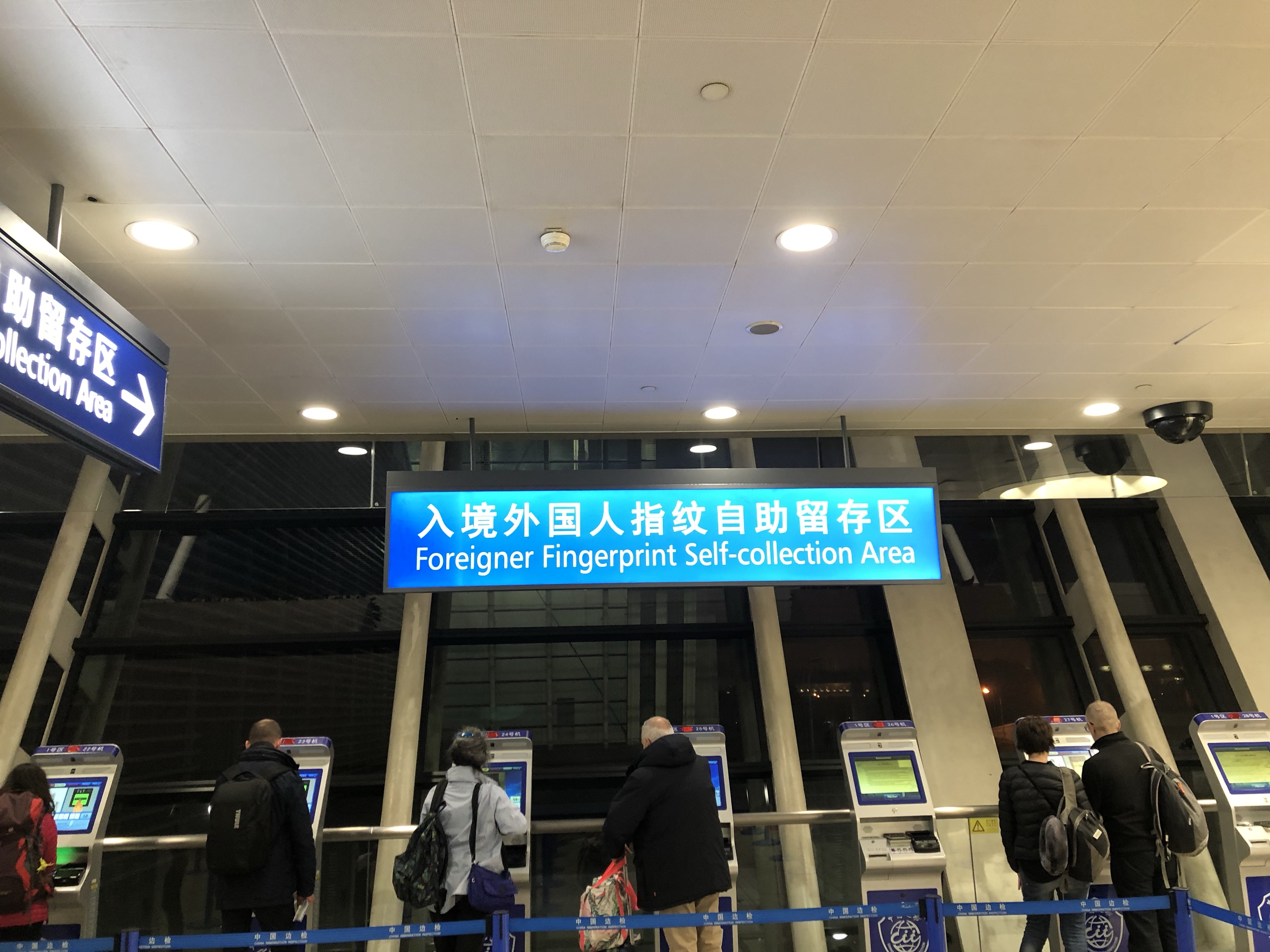 Efter den här totalt ineffektiva passagen var det dags att lämna sina tumavtryck i en self-service hörna. Intryck av Kina – här är man bevakad deluxe, det är kameror överallt och man får tydligen uppförandepoäng i nåt system här via kameraövervakningen. Skumt. Undrar vad jag får för poäng för det här kritiska inlägget😄