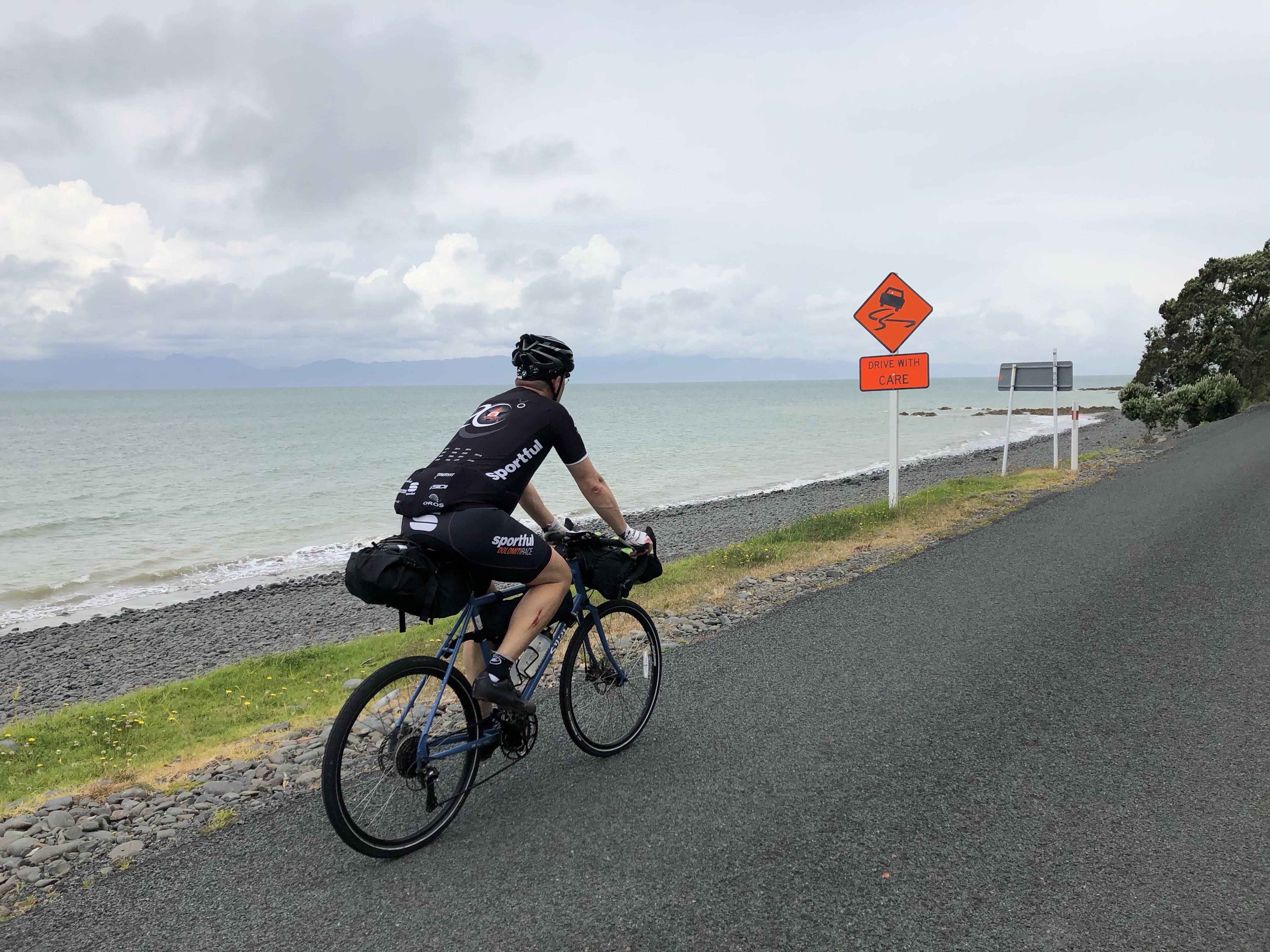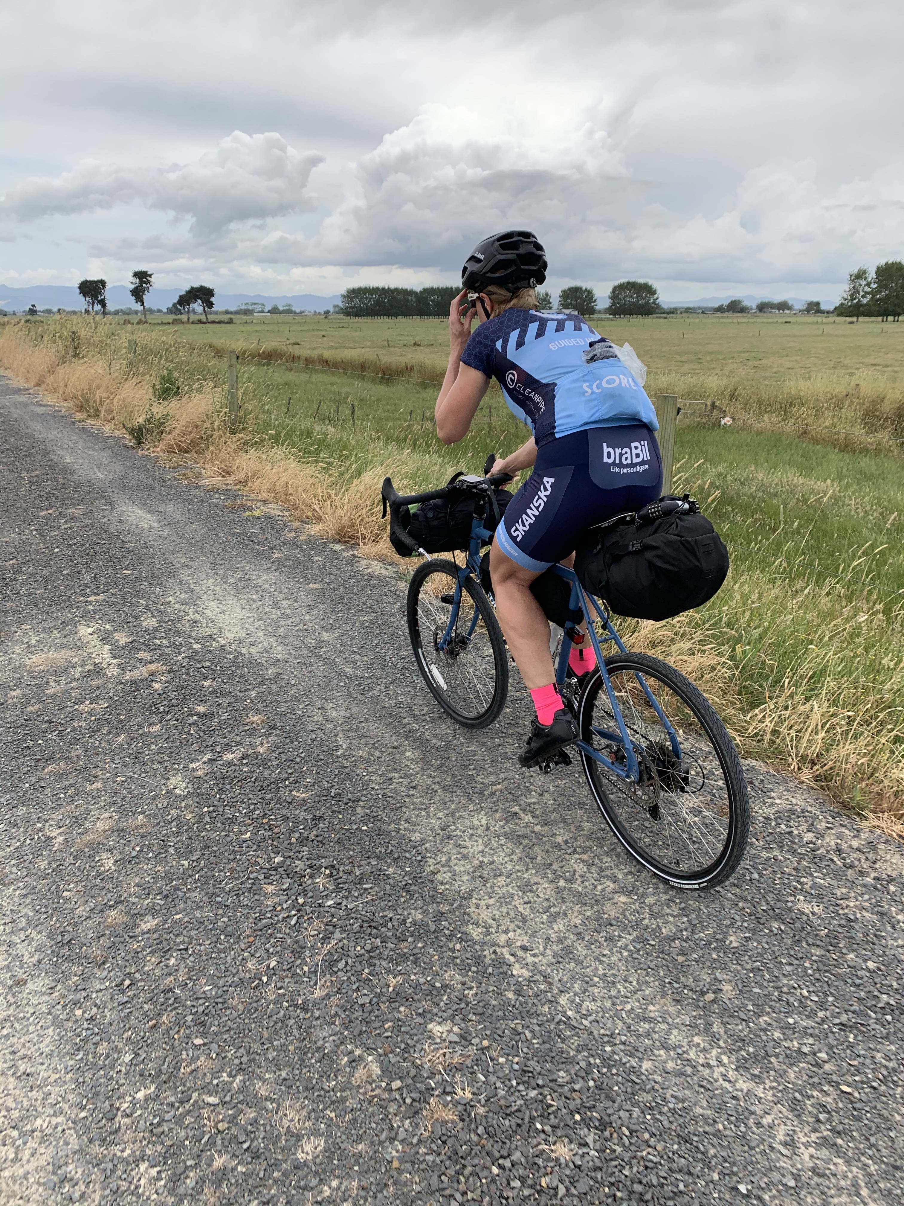 Det snackas om att det är oväder på väg in också men det hör vi liksom inte utan tänker bara på hur nice det är att få cykla i flera veckor på andra sidan jorden och planerar inför dagsetapp 2.
