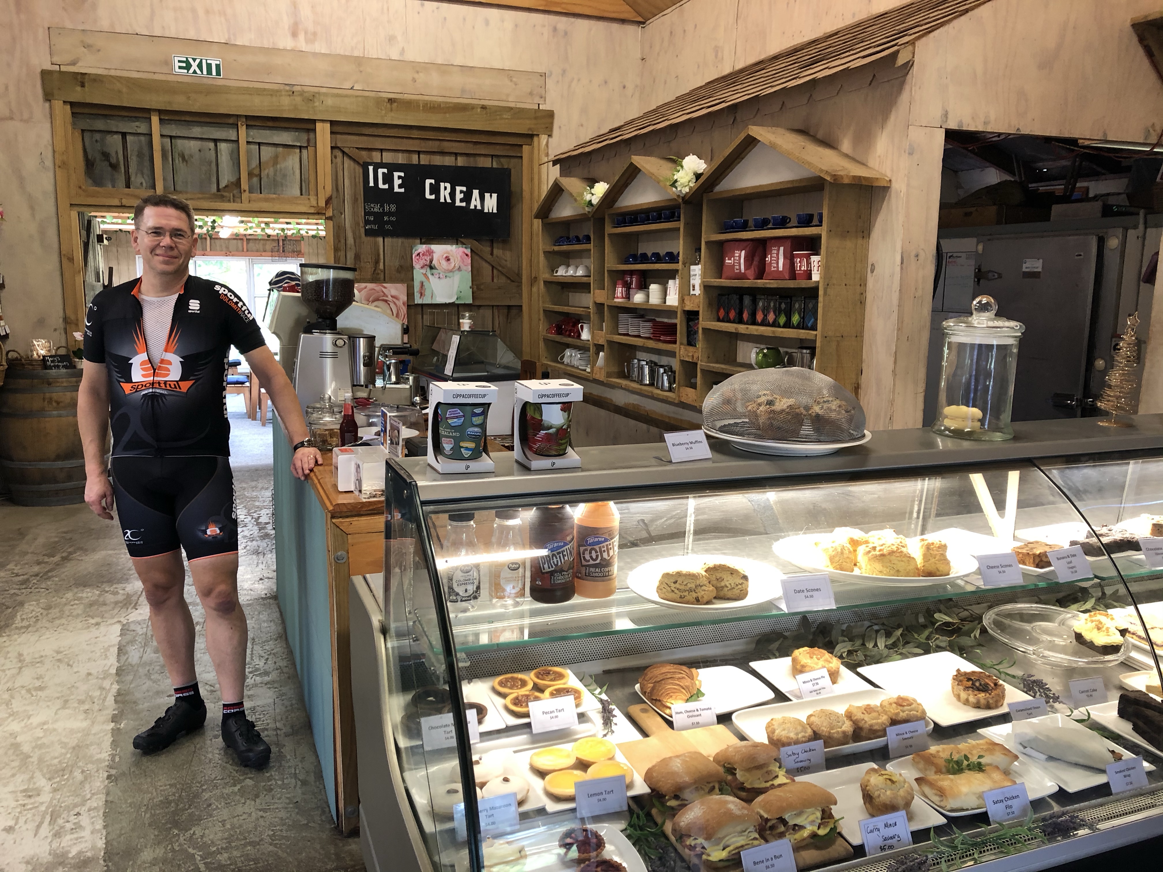Efter några mil, i Clevedon, svänger vi in till ett fik vid vägkanten. Dags att äta lunch. Vi hade hört att fikakulturen här i Nya Zeeland är grym och det kan vi verkligen intyga. Ställer ser inte mycket ut för världen men insidan innehåller kärlek! Till mat och juste fikakänsla. Det här lovar gott inför fortsättningen.