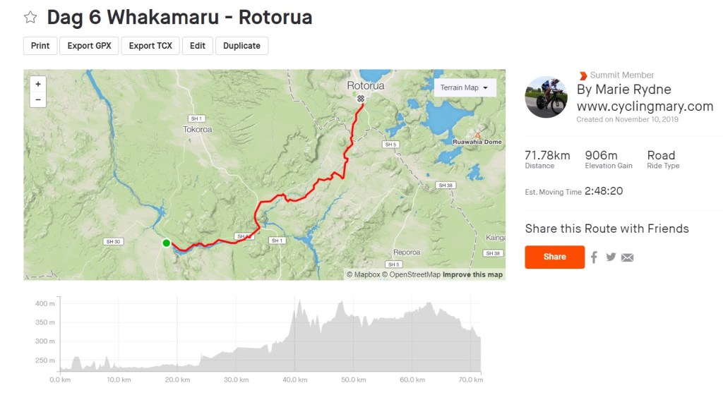 Resten av turen som är kvar till Rotorua går fort att köra, den är på allmän väg med trafik. Kontrast mot de fina trailsen i skogen men ibland gör det inget att köra på de större vägarna, vinsten är att vi kommer fram lite fortare. I Rotorua bor vi på Holiday Inn Hotell som ligger nära den Thermalanläggning dit vi ska i morgon.