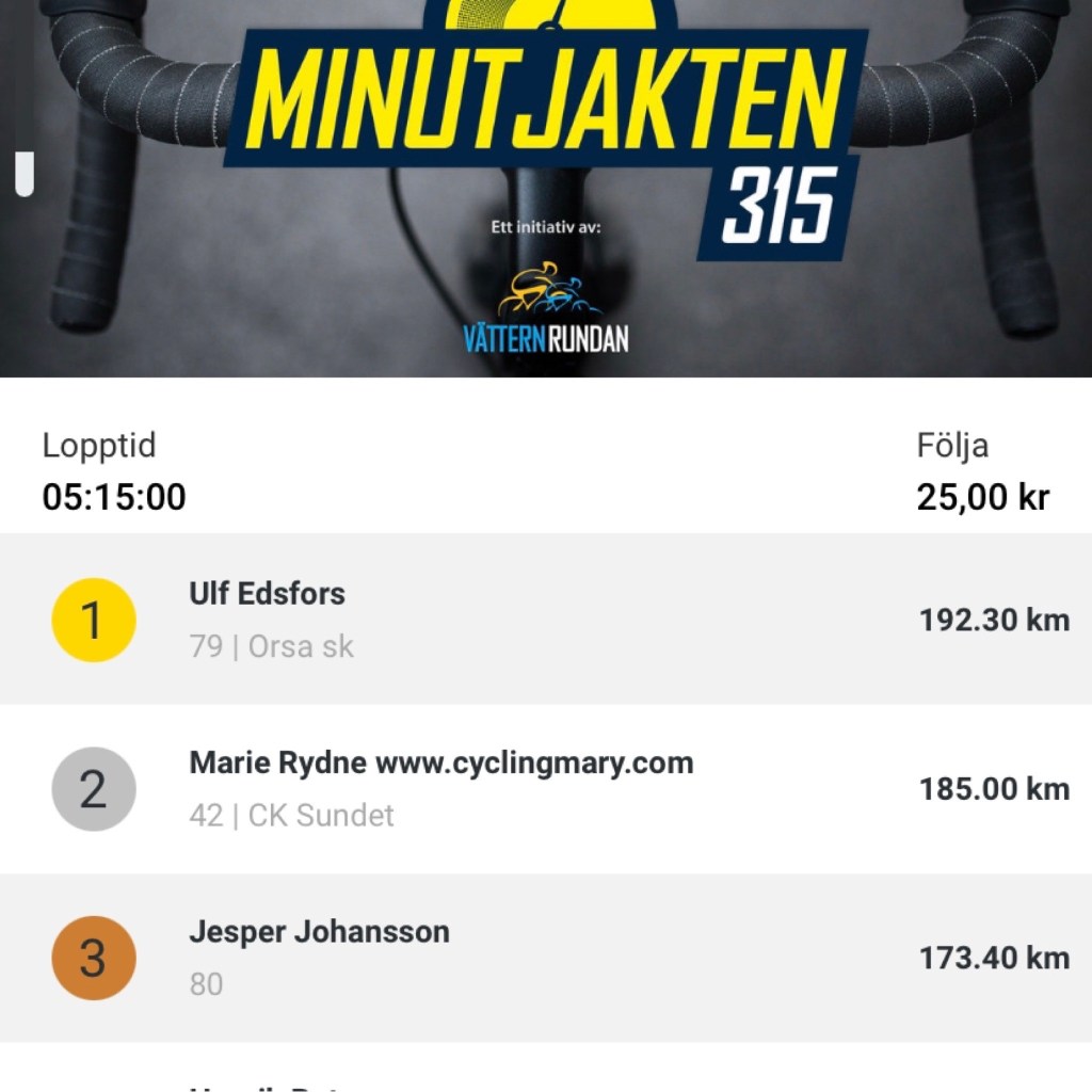 Vad gäller cykelträningen så är ju denna vår inte en av de bättre jag upplevt. Sällan har jag frusit så mycket som jag gjort i år. April kändes som december och inte är det mycket bättre i inledningen av maj. Eftersom jag bor på Västkusten har jag förutom kylan också förmånen att få cykla i mycket vind. Ofta. Jag har ändå fått till några längre cykelturer på 30/25 mil-isch. Körde bland annat Minutjakten 315 som Vätternrundan stod bakom, där kämpade jag mig till en total andraplats och en första i damklassen. Nu planerar jag i det närmaste för en rejäl långcykling under Kristi Himmelsfärdshelgen.