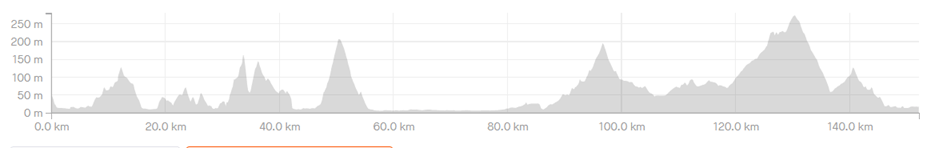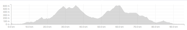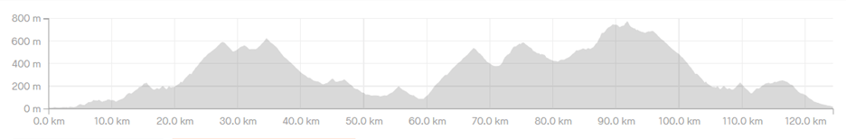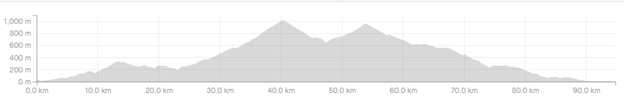 Beskrivning: En längre rutt med många höjdmeter, lutningarna är dock överkomliga och ligger på mellan 6-10%. Många höjdmeter betas av de första 5 milen, därefter går det en del utför innan det går uppför igen mellan mil 8-10. Sen går det utför på nytt.