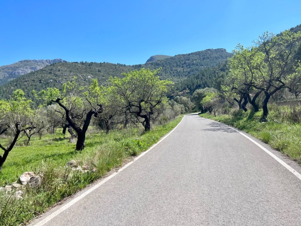 Det är inte lika mycket växtlighet, vägen är lång och svepande med bra uppsikt. Det ger lite variation till de andra dalarna i området. Till Busot går det svagt uppför. Busot är för övrigt en mysig Spansk by där man kan passa på att stanna till för att få en fika bland lokalbefolkningen.