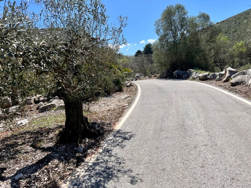 Slingan kommer sedan ut på den lite större vägen som leder till Relleu/Port du Tudons ifall du svänger höger. Denna rutt svänger till vänster och tar dig tillbaka till Finestrat. Det går givetvis fint att förlänga rutten åt flera olika håll för den som vill ha en längre dag i sadeln.