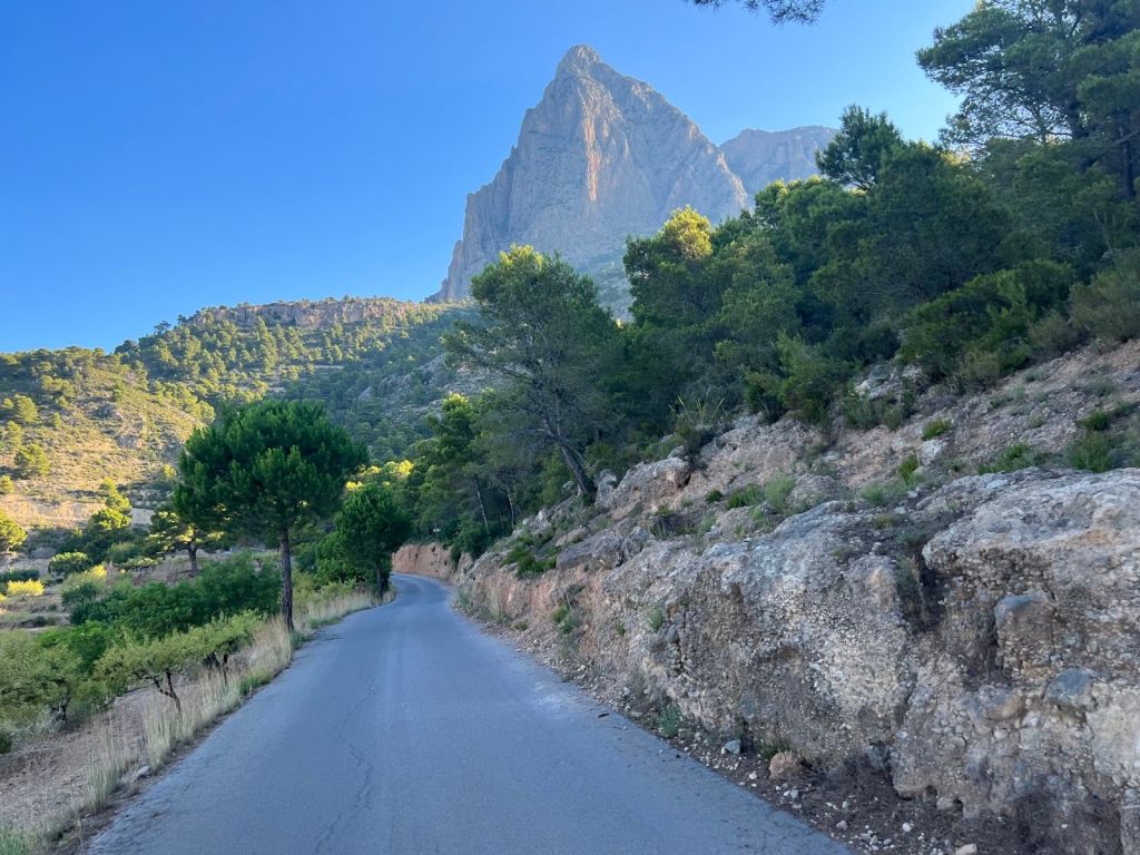 Väl uppe fĂĄr du sedan din belöning, du kör pĂĄ ett skrĂĄ uppepĂĄ dalen och här väntar en härligt böljande körning innan du kommer till Tarbena. Där fortsätter vägen nedĂĄt och bjuder pĂĄ härliga vyer. Snart kommer du till Callosa, vägen dit är lite böljande precis som den sista biten ned till Altea – där du sedan kan varva ned längs den platta havslinjen till Albir.