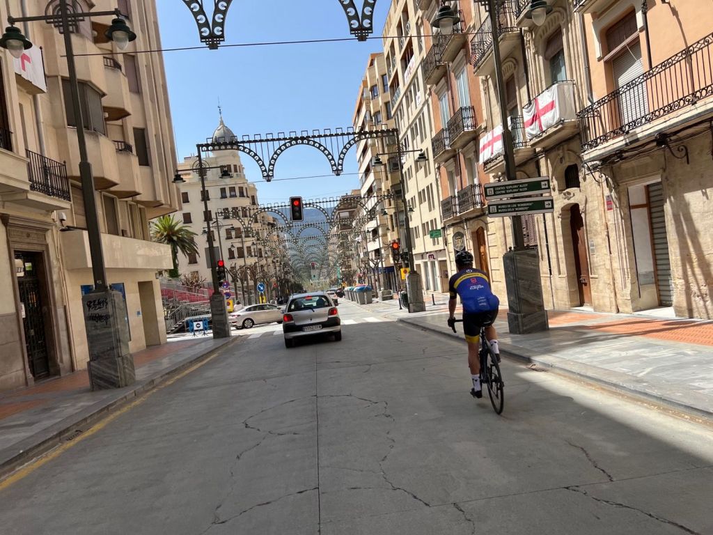 Rutten går ut över Finestrat och sedan Port du Tudons, du avverkar relativt många höjdmeter av den totala rutten genom denna uppfart. Sedan fortsätter den bort till staden Alcoy, som är värd ett stopp, det är cirka 7 mil och 1 500 höjdmeter dit. Alcoy är en stor stad med bra atmosfär och det finns många ställen att stanna på.