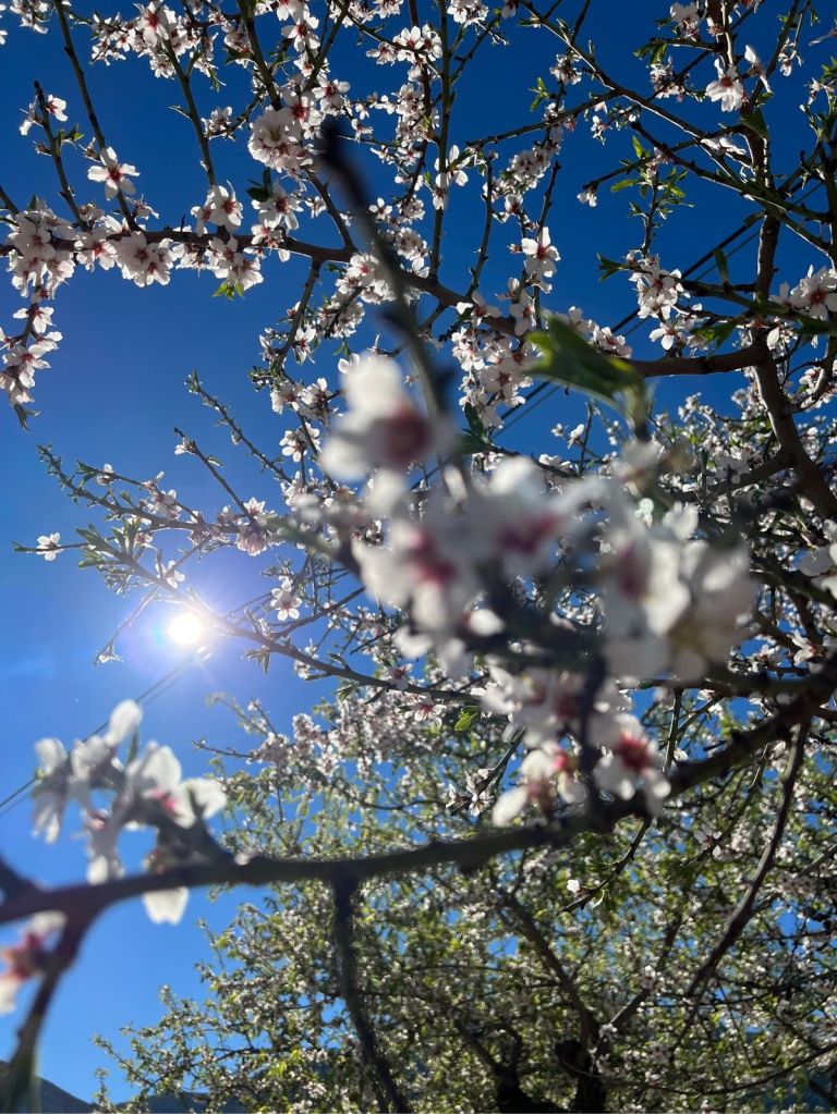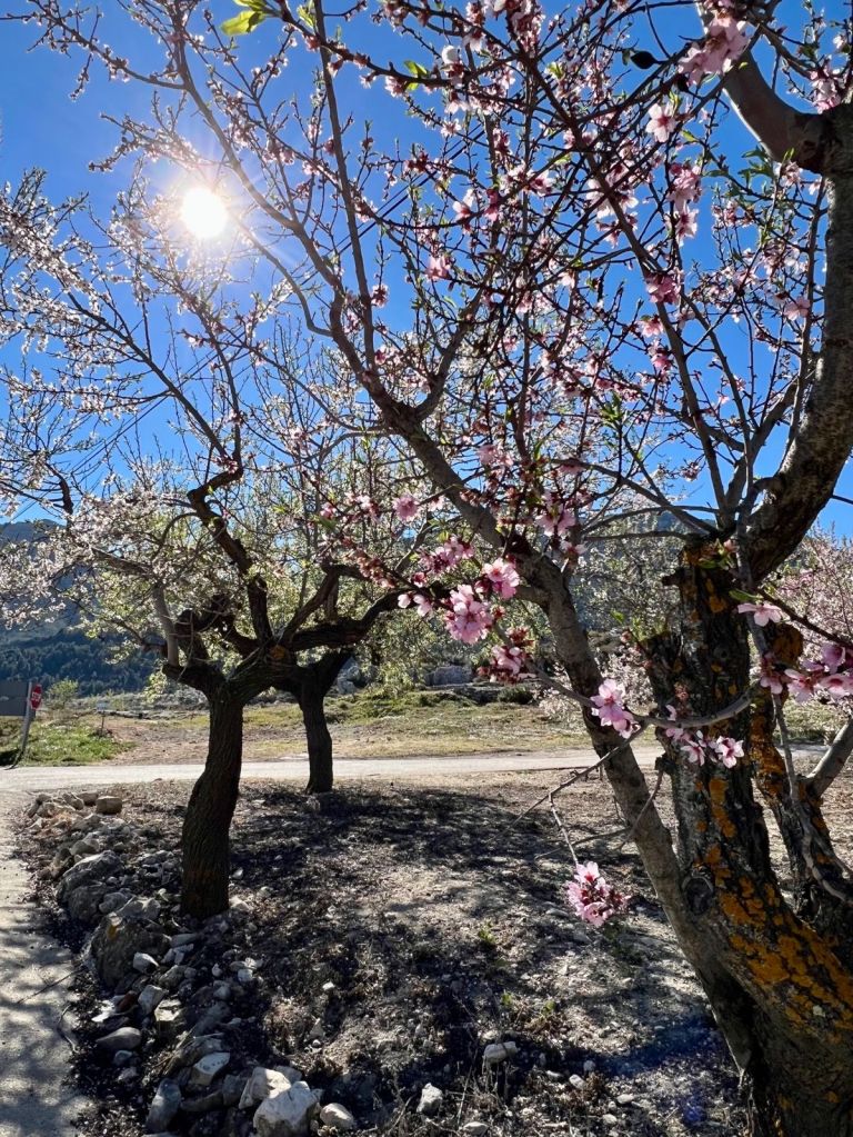 Väl uppe på Tudons kan man njuta av den fina utsikten innan en härlig utförskörning tar vid. Det här är en fin tur nedåt i dalen och om du cyklar här på våren (februari/mars) står mandelträden i full blom då du kommit ned till byn Alcoleja. Det är som en sagovärld med de rosa träden inbäddade mellan bergsknallarna.